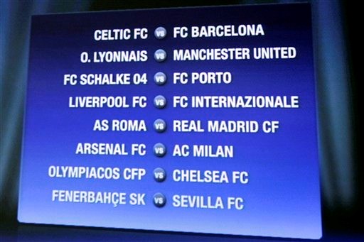 UEFAチャンピオンズリーグ2007/2008、決勝トーナメント1回戦の組み合わせ。試合の日まであと2週間になったので対戦カードを確認。